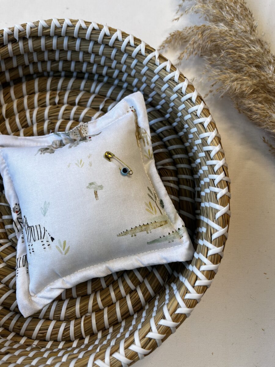 Τα μαξιλαράκια φυλαχτών είναι φτιαγμένα από 100% βαμβακερό ύφασμα και με υποαλλεργική γέμιση! Ιδανικό ώστε να βάλετε τα πρώτα δωράκια του μωρού και να τα κουβαλάτε πάντα μαζί σας και δίπλα στο μωρό! Μικρά και διακριτικά