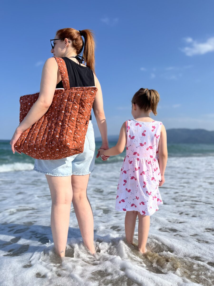 Μία πρόταση για παραλία από το Meraki και φυσικά για όλη την οικογένεια! Η τσάντα θαλάσσης που έχει τεράστια χωρητικότητα και είναι ραμμένη στο χέρι από 100% βαμβακερό ύφασμα! Στο εσωτερικό της υπάρχει έξτρα θήκη και κλείνει με φερμουάρ για απόλυτη ασφάλεια! Σε συνδυασμό με τις πετσέτες μας και τα πόντσο για το μικρούλι σου Θα εντυπωσιάσεις και στην παραλία φέτος